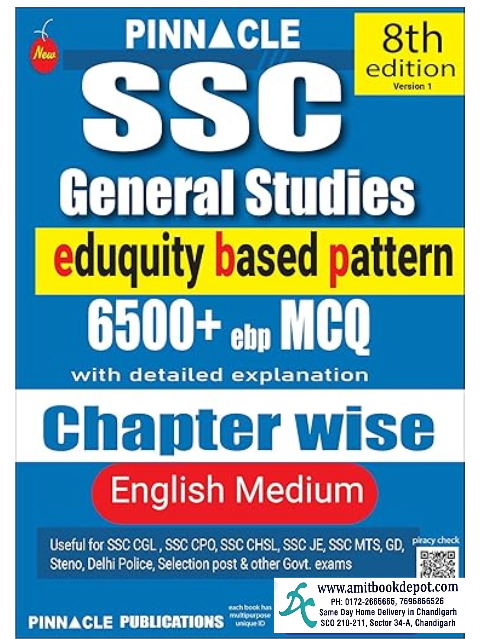 Pinnacle SSC General Studies Chapterwise 6500+ TCS-MCQ (7th Edition Till Jan 2025) is a comprehensive MCQ book for SSC CGL, CHSL, CPO, MTS, GD, and other SSC exams. It includes 6500+ MCQs covering static GK, history, polity, geography, economics, physics, chemistry, biology, and current affairs (updated till Jan 2025). Designed as per the latest TCS-based exam pattern, this book ensures thorough practice, quick revision, and high accuracy. Ideal for competitive exam aspirants, it offers chapterwise segregation, detailed explanations, and previous year questions. A must-buy for SSC exam success!